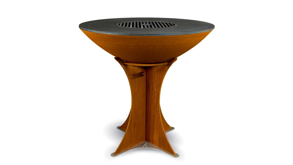Arteflame redefines grilling as a social event. It seamlessly transitions from a high-performance flat top grill to a captivating fire bowl, fostering gatherings and celebrations. Its form and function are unparalleled, with CORTEN steel legs that not only provide stability but also add artistic flair to your backyard.