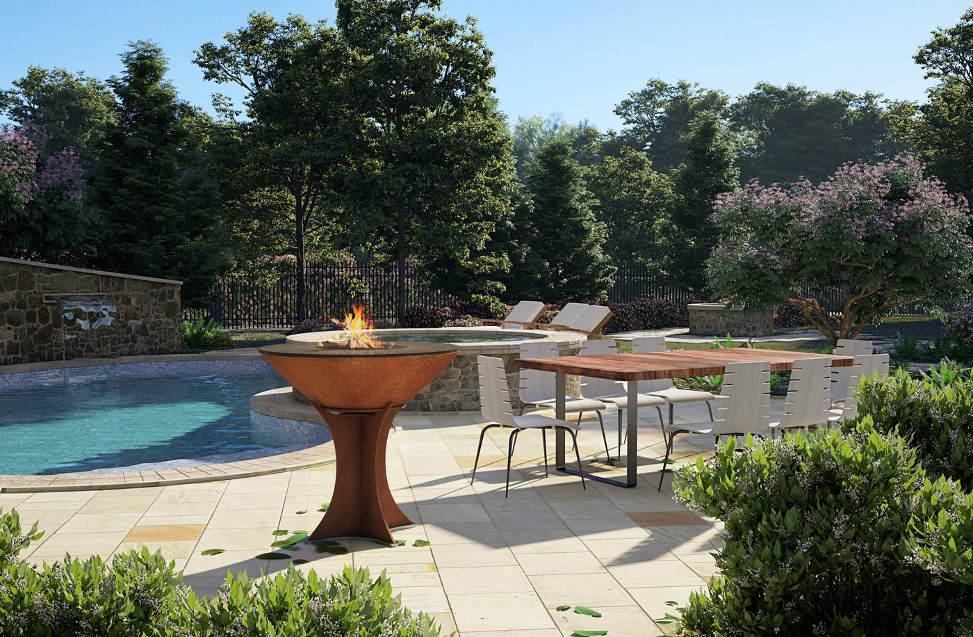 Arteflame Classic 40″ — Round Base Flat-Top Grill & Fire Bowl (CORTEN Steel)