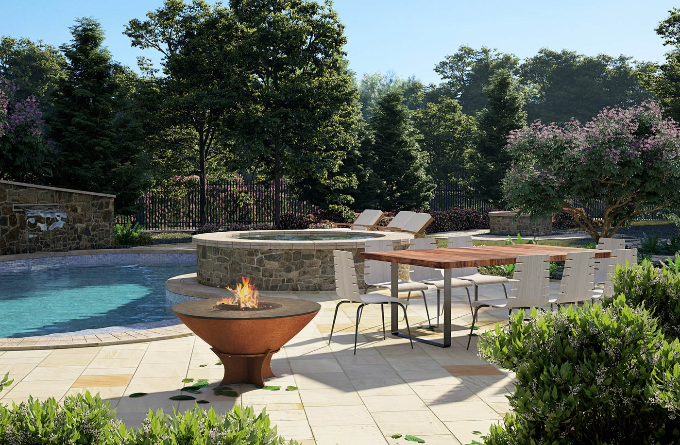 Crafted from high-grade US corten steel, known for its weathering properties, the Arteflame 40" Fire Pit is not just a barbecue but a durable piece of art. Its low round base and seamless spun bowl are designed to withstand the elements and age beautifully.